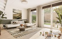 De woningen hebben een grote leefruimte op de begane grond, met een L-vormige woonkamer. Aan de voorzijde van de woning bevindt zich de keuken, zodat je straks tijdens het koken uit kunt kijken over de groene lanen voor de deur. Met ramen over vrijwel de volledige achtergevel van de woning, geniet je bovendien volop van natuurlijk daglicht in huis.