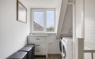 Voorzolder met kunststof dakkapel aan achterzijde, vaste kastruimte, aansluiting voor wasapparatuur en opstelplaats voor de Remeha CV-combiketel. Via de overloop is tevens de grote bergvliering (over de gehele breedte van de woning) bereikbaar.