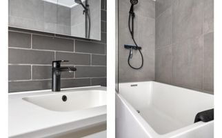 Op de eerste verdieping bevinden zich maar liefst vier eigentijds afgewerkte slaapkamers en een comfortabele badkamer met een groot ligbad inclusief glazen douchescherm, wastafelmeube