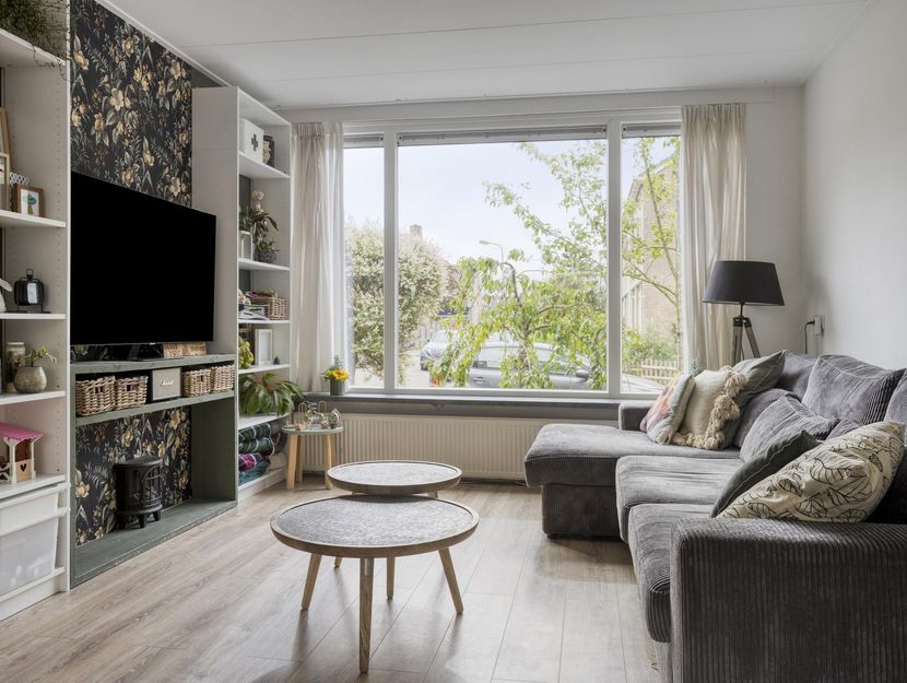 De woonkamer is heerlijk licht door de ramen aan de voor en achterzijde van de woning.