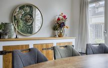 De keuken is van alle gemakken voorzien: oven, magnetron, vaatwasser en 4-pits gasfornuis. De achterdeur geeft toegang tot de tuin en is voorzien van een hor, heerlijk in de zomer!